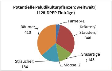 Nicht jede in der DPPP verzeichnete Art ist für Paludikultur geeignet. Von 1128 Einträgen der DPPP konnten 659 bewertet werden. Davon hat die Hälfte, immerhin über 300 Arten, ein gutes oder vielversprechendes Potential haben. 469 Arten konnten aufgrund schlechter Datengrundlage nicht bewertet werden, dabei waren besonders Arten aus den Tropen schwierig einzuschätzen. Eine Recherche vor Ort und der Literatur in den jeweiligen Landessprachen könnte helfen diese Lücken zu schließen.