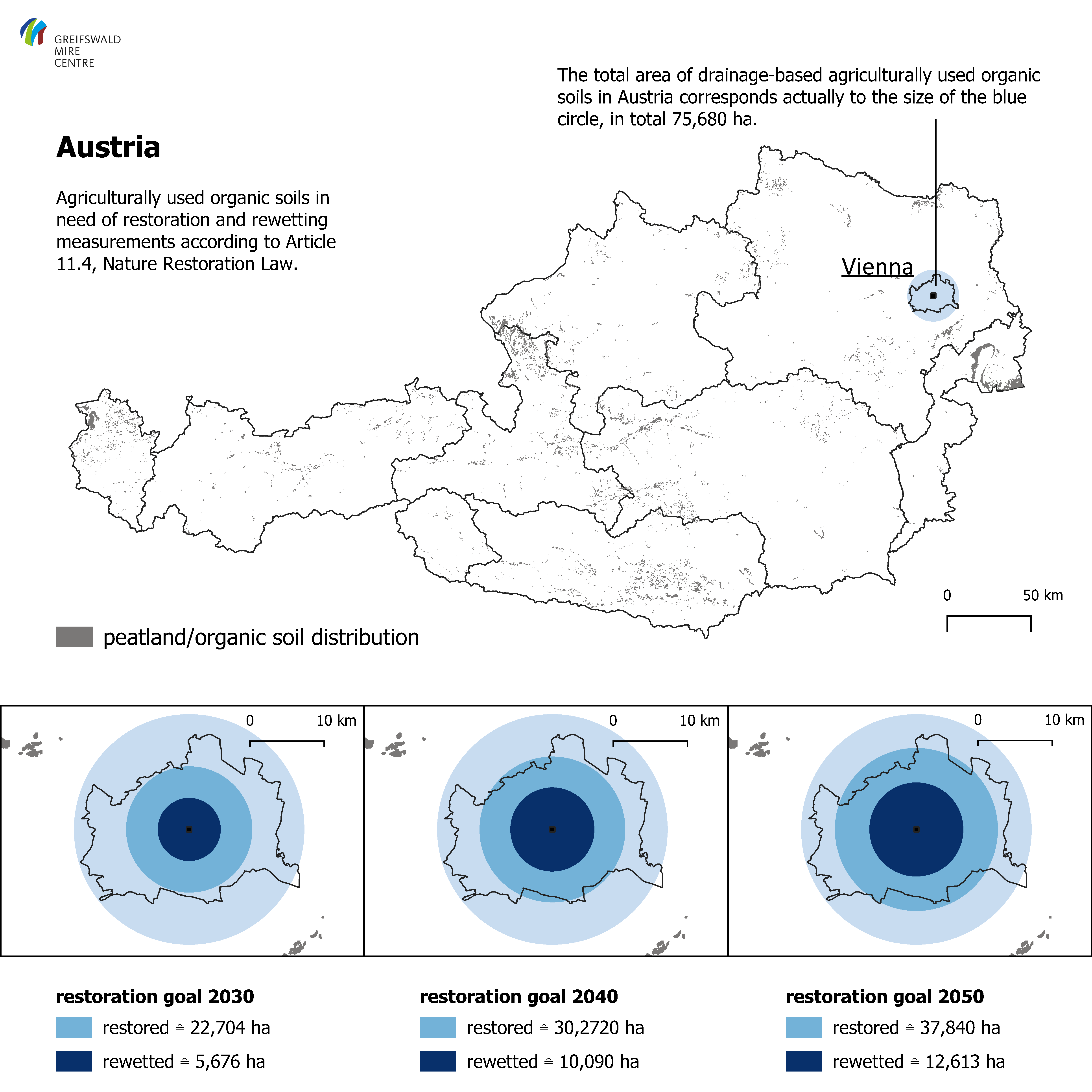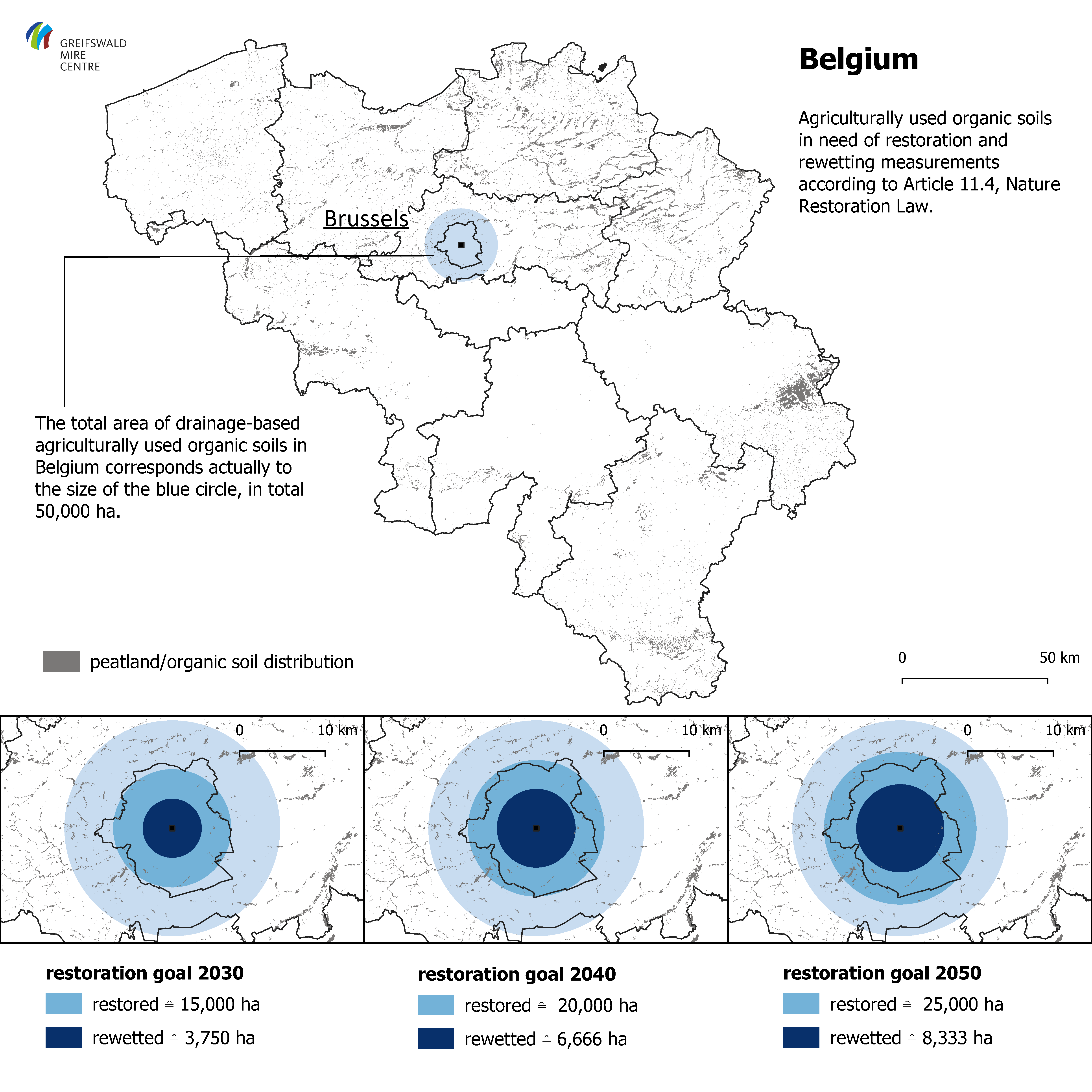 2024 Policy briefs und Ländersteckbriefe: Neuer politischer Auftrag für die Wiederherstellung von Feuchtgebieten in Europa (auch in Englisch, Französisch, Niederländisch) und Karten zu den Wiederherstellungszielen in Belgien, Deutschland und Österreich