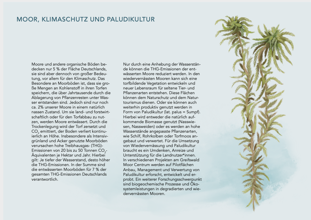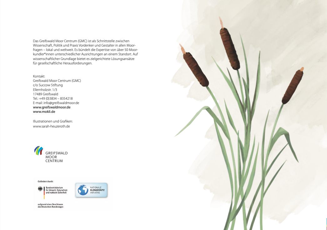 Hirschelmann, S., Tanneberger, F., Wichmann, S., Reichelt, F., Hohlbein, M., Couwenberg, J., Busse, S., Schröder, C. & Nordt, A. (2020) Moore in Mecklenburg-Vorpommern im Kontext nationaler und internationaler Klimaschutzziele - Zustand und Entwicklungspotenzial, Faktensammlung. Greifswald Moor Centrum-Schriftenreihe 03/2020 (Selbstverlag, ISSN 2627‐910X), 35 S.